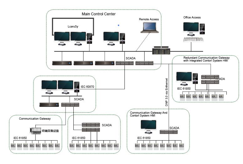 该项目要求各站实现变配电自动化,实现“四遥”功能,并且满足各站分散控制和总站集中控制的要求。
