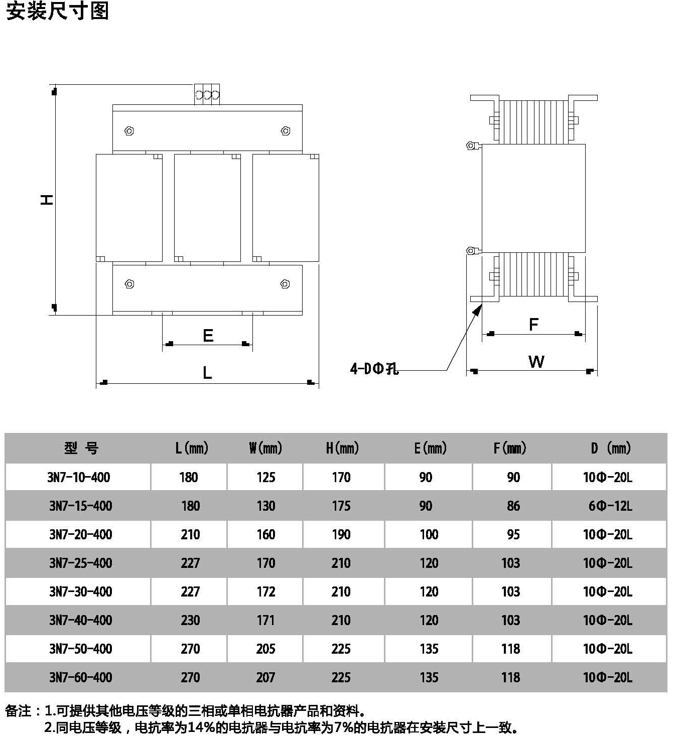 电抗率 5%,5.5%,5.67%,6%,7%, 8%,12.5%,14%